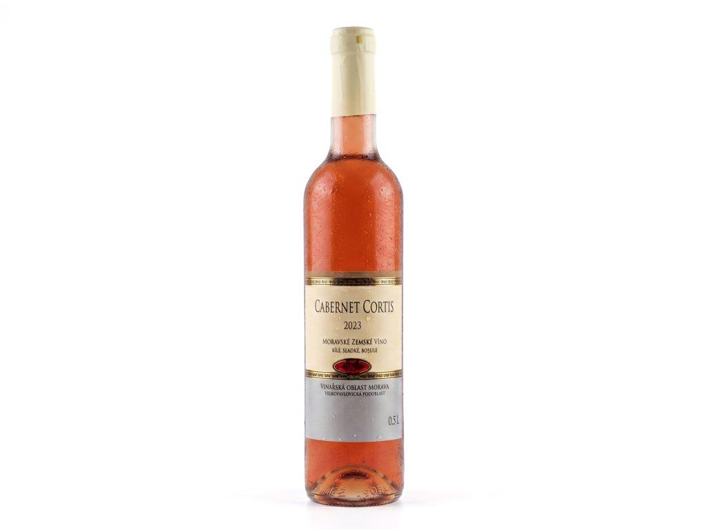 Udělat supersladké rosé z Cabernetu Cortis vyžaduje trpělivost i odvahu. Tato odrůda je známá svou odolností a intenzivním projevem, který se v ročníku 2023 přetavil do podoby, které u nás familiárně říkáme „bobule“. Menší balení (0,5 l) není náhoda – tohle víno je tak koncentrované, že ho stačí sklenka, aby zaplnilo celé patro.